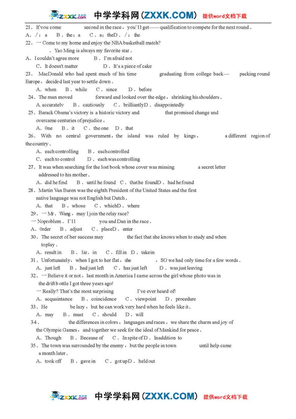 2010高考英语完形解题技巧(7版)