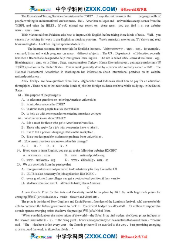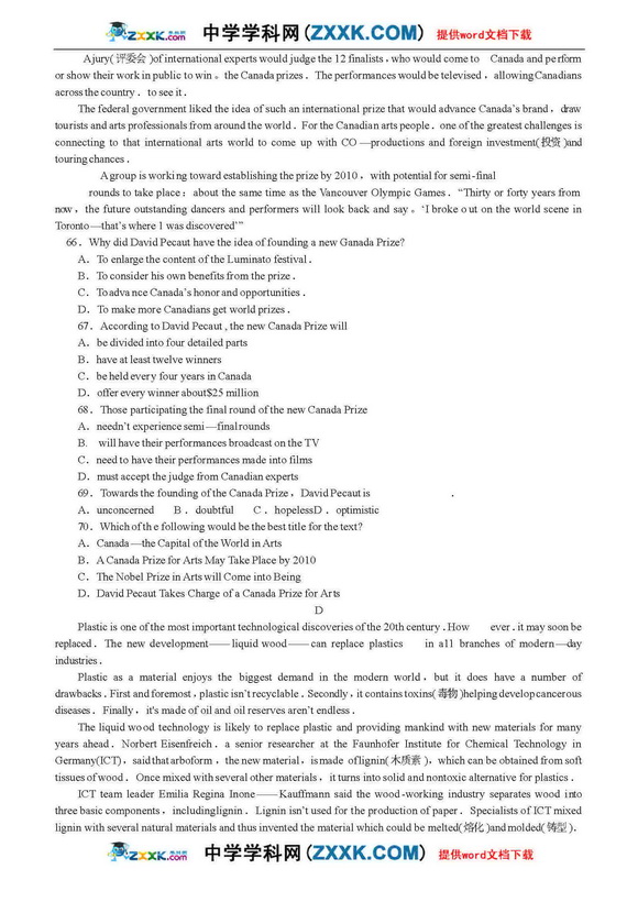 2010年高考英语预测试试卷及答案分析