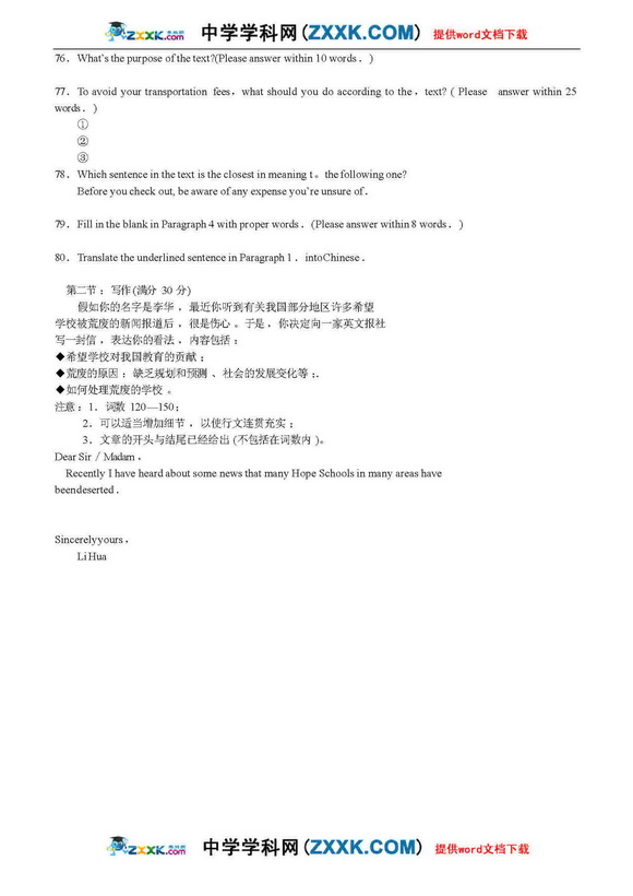 2010年高考英语写作试题预测及答案