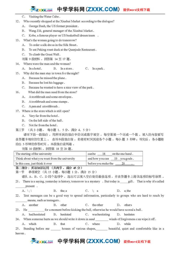 2009年高考英语科考试试题模拟