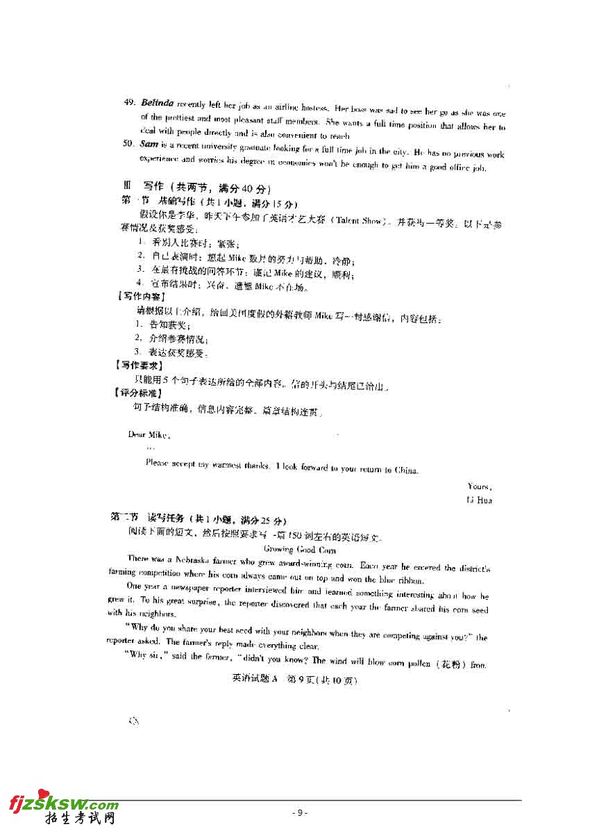 2010年高考英语写作试题预测及答案