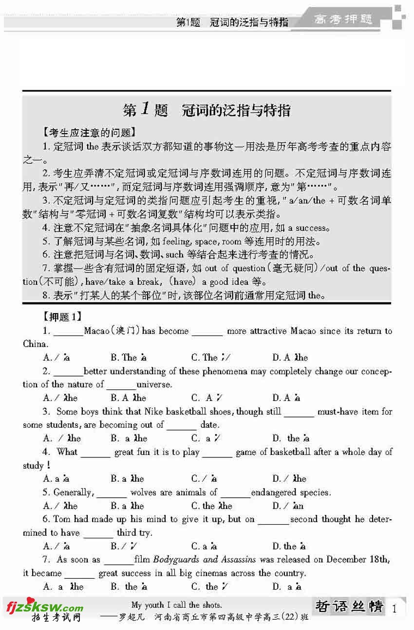 2011高考英语定语从句预测(含解析)