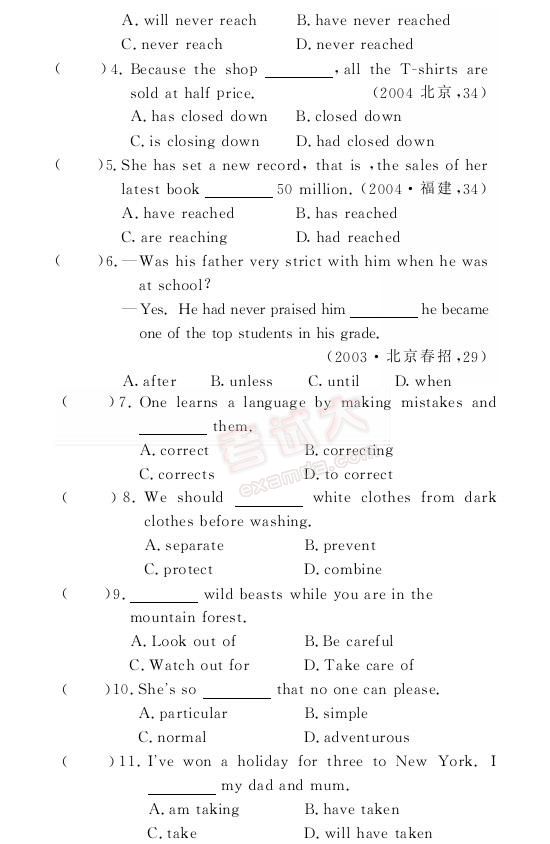 金版1+1:2007年高考英语双测题解考点(四)