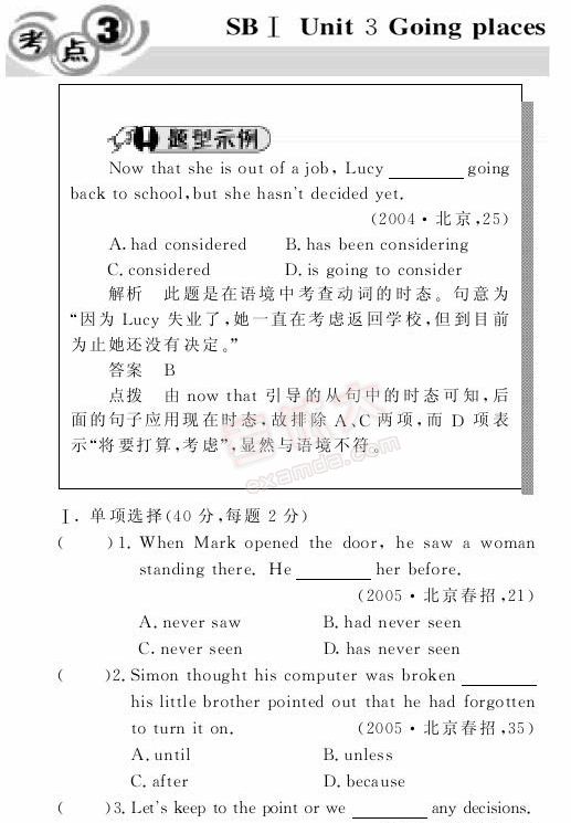金版1+1:2007年高考英语双测题解考点(三)