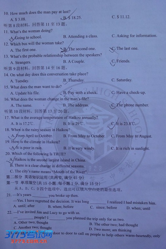 2013齐齐哈尔铁锋区中职升高职对口招生