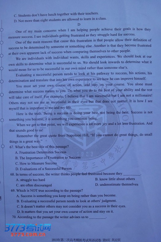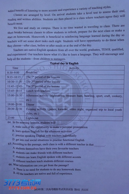 3773考试网 - 高考 - 高考模拟题 - 高考英语 - 正文