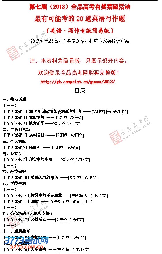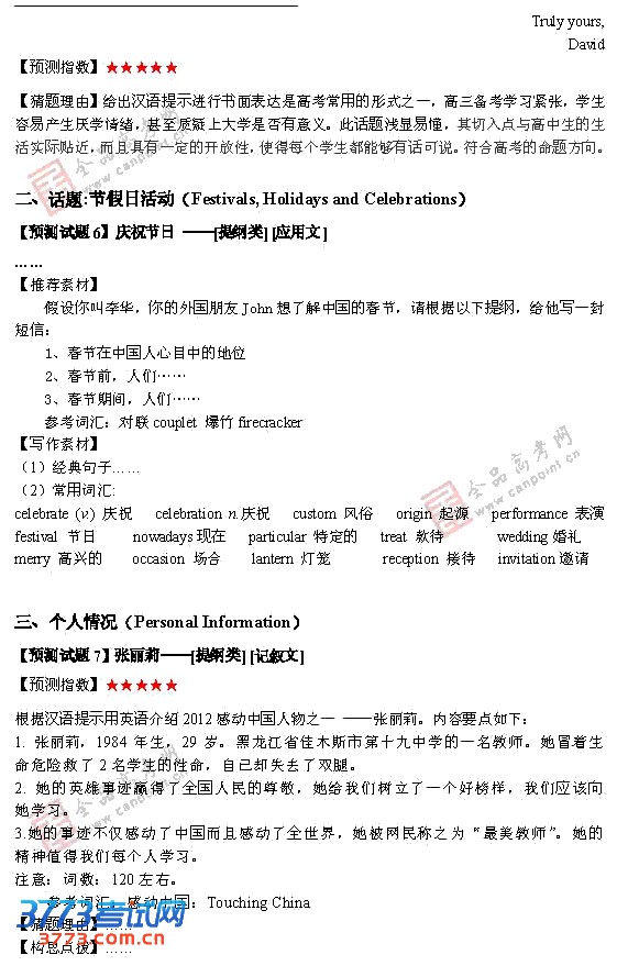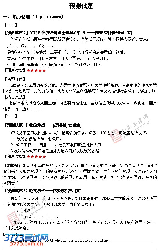 2013高考试题预测:最有可能考的英语写作题