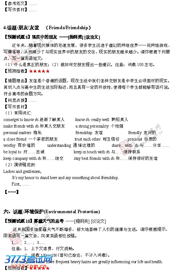 2010年高考英语写作试题预测及答案
