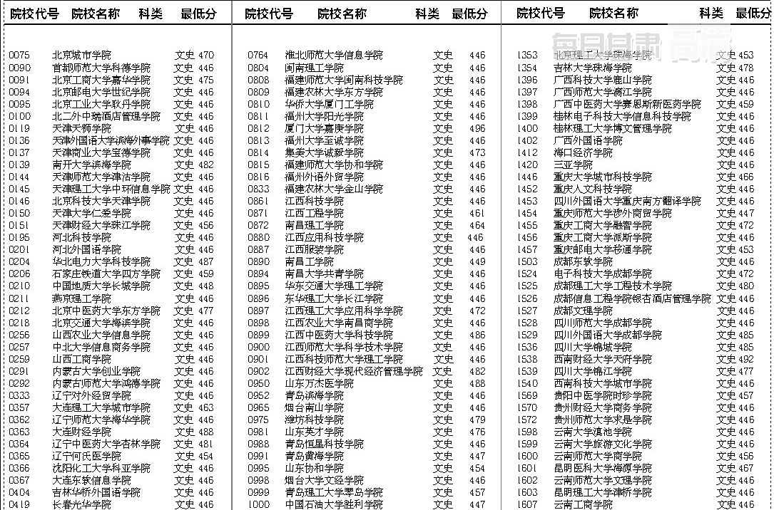 甘肃省高考三本院校投档线(文史)公布