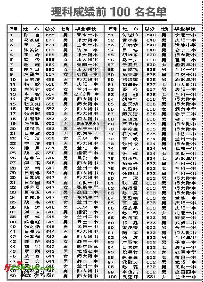2011甘肃高考赵轶君、陈言分获文理科状元