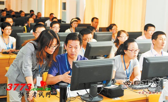理科网上阅卷在兰州大学进行。在西北师大、兰州大学两所学校里,各科目都分别在不同的教室评阅,每位老师面前的电脑上只显示不同考生的同一道题,没有任何相关考生的信息。老师敲击键盘给出分数后,下一个人的试卷就自动显示出来。每道题目由两个老师评阅,取两人平均分,如果分差较大,再由第三人进行评阅。题组长和学科组长对每个评卷老师的评卷情况进行即时抽查,确保每个评卷老师将误差值控制到最小范围,做到不错评一题,不漏给一分。