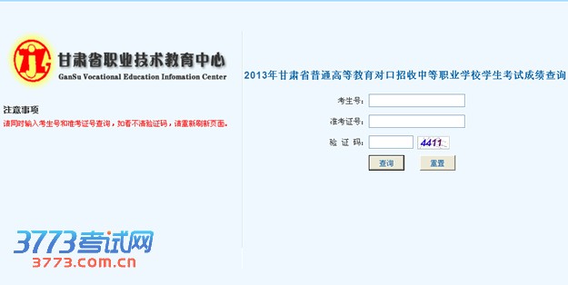 2013年甘肃省普通高等教育对口招收中等职业学校学生考试成绩查询公告