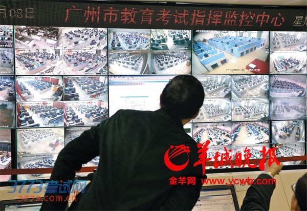 在广州市教育考试指挥监控中心,可以看各个考场情况 羊城晚报记者 陈秋明摄