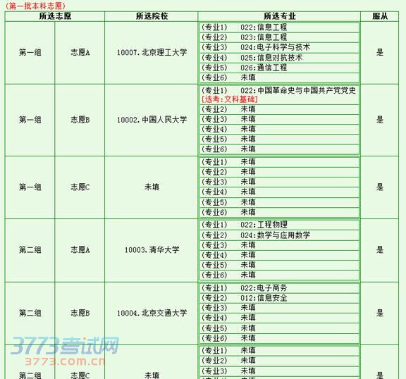 3)、确认各批次志愿信息