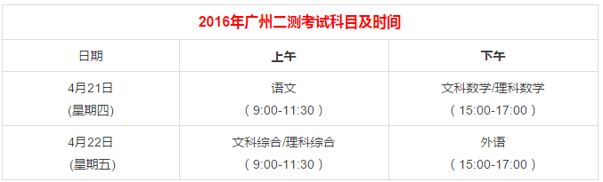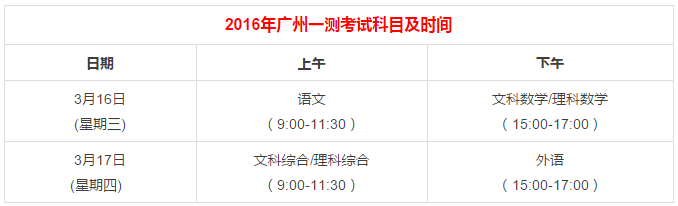 由于我省普通高考英语听说考试时间定于3月12日至15日举行,为避免冲突,同时也为首次采用全国卷模式下的数据统计与试题分析预留足够时间,今年广州市普通高中毕业班综合测试(一)只能安排在周三和周四举行。详细安排如下: