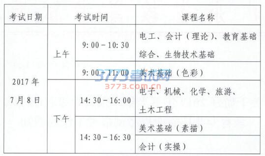 2、其他课程类别操作技能考试由各市招生部门根据实际情况在2017年6月24日-一2017年7月8日内完成。各课程操作技能考试工种类别代码及考试时间详见附件1。