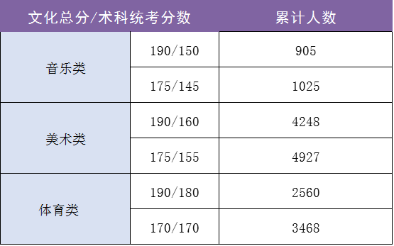 广东省2017年普通高校招生第三批本科(体育类和艺术类)院校征集志愿在库考生分数段统计表