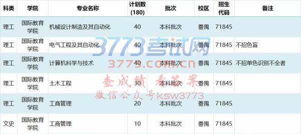 广东省普通理科招生计划6561人,普通文科招生计划 443人,美术类(统考)招生计划351人 ,美术类(校考)招生计划6人,地方专项计划270人,“2+2”国际班计划180人,戏剧与影视学类(中外合作办学)(动画)招生计划200人。