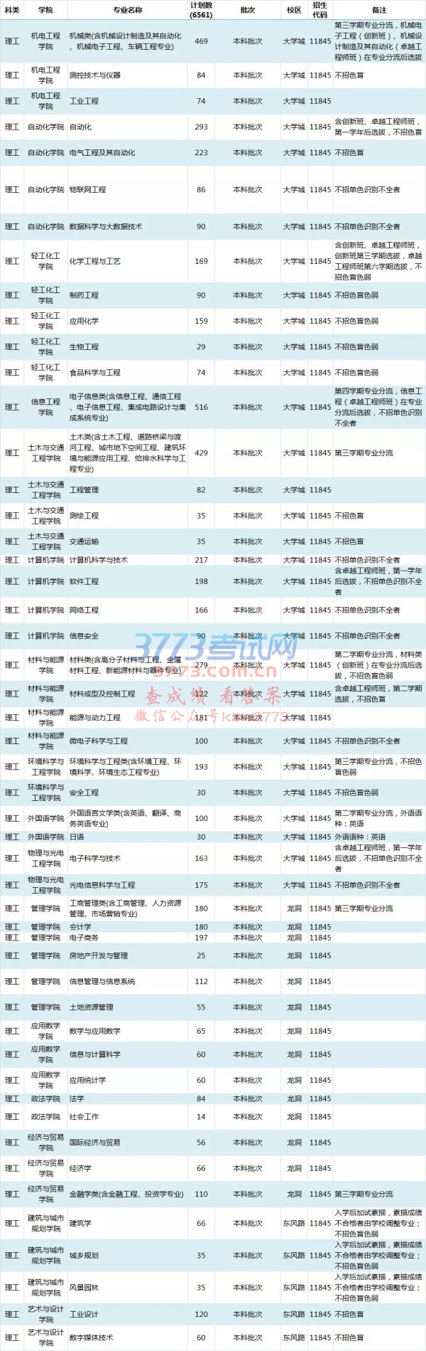 广东省普通理科招生计划6561人,普通文科招生计划 443人,美术类(统考)招生计划351人 ,美术类(校考)招生计划6人,地方专项计划270人,“2+2”国际班计划180人,戏剧与影视学类(中外合作办学)(动画)招生计划200人。