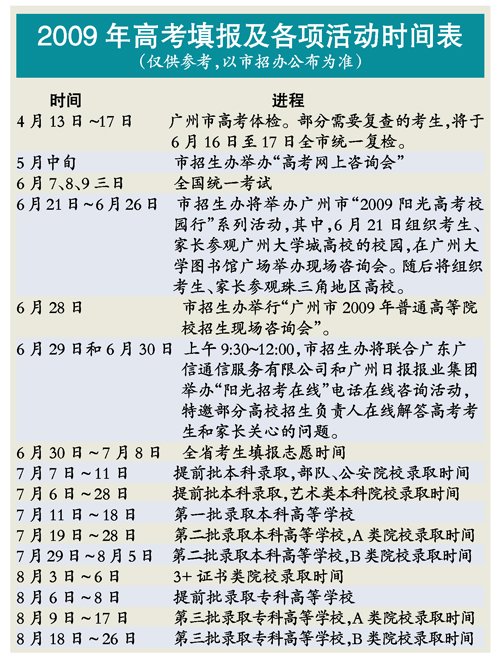 2009年广东普通高考报考人数创历史新高,全省共有64.4万名考生报名,比2008年增加2.9万人,增加幅度达4.7%。与此相适应,全国高校在广东的招生计划也将增加2万余人。现在距离2009年高考不到50天了,考生们进入最后的冲刺复习,家长们也密切关注即将到来的高考。本期求学指南搜罗今年高考的各种动态,为考生、家长捧上最实用的资讯大餐。