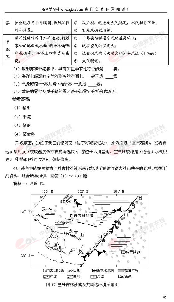 2010年广东高考综合科大纲内容有删减每题