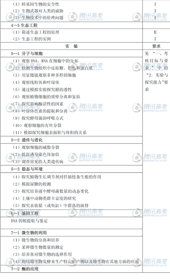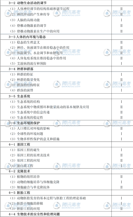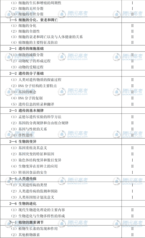 2010年广东高考综合科大纲内容有删减每题