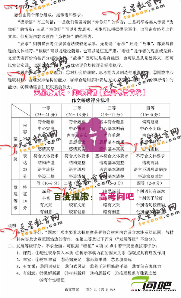 2010年广州一模语文答案/2010年广州市普通高中毕业班综合测试(一)语文答案