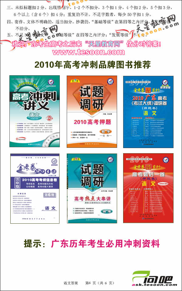 2010年广州一模语文答案/2010年广州市普通高中毕业班综合测试(一)语文答案