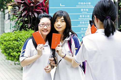 昨日,广州第四十一中的考生都收到了校长的“利是”———印有“一切皆有可能”、“goodlucktoyou”字样的卡片羊城晚报记者陈文笔摄