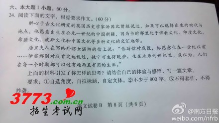作文(如图),并非是网上盛传的“另一面”。省考试院对传播“泄题”者表示谴责,认为扰乱了考试秩序。