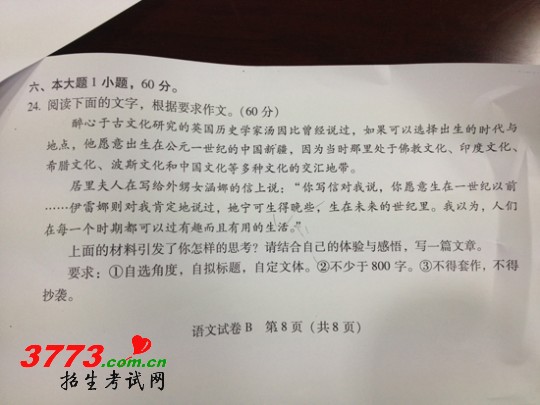 | 广东省高考语文试卷作文题目截图。记者刘黎霞供图 |