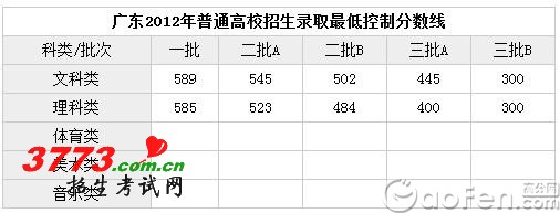 广东省2012年高考分数线公布 一本:文