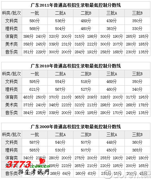 2011年广东高考录取分数线