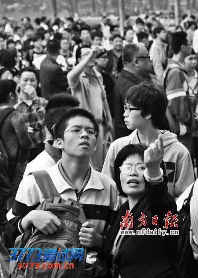 家长抱怨的还有考务方写错考试时间。“学生准考证上写明的考试时间是早上9时至12时,但为什么写在考场入口处海报上的时间却是早上9时至11时30分?”在离考试开始还有30分钟时,考务人员突然用油性笔将海报上印刷时间改成“12:00”,令在场学生、家长颇为不满。