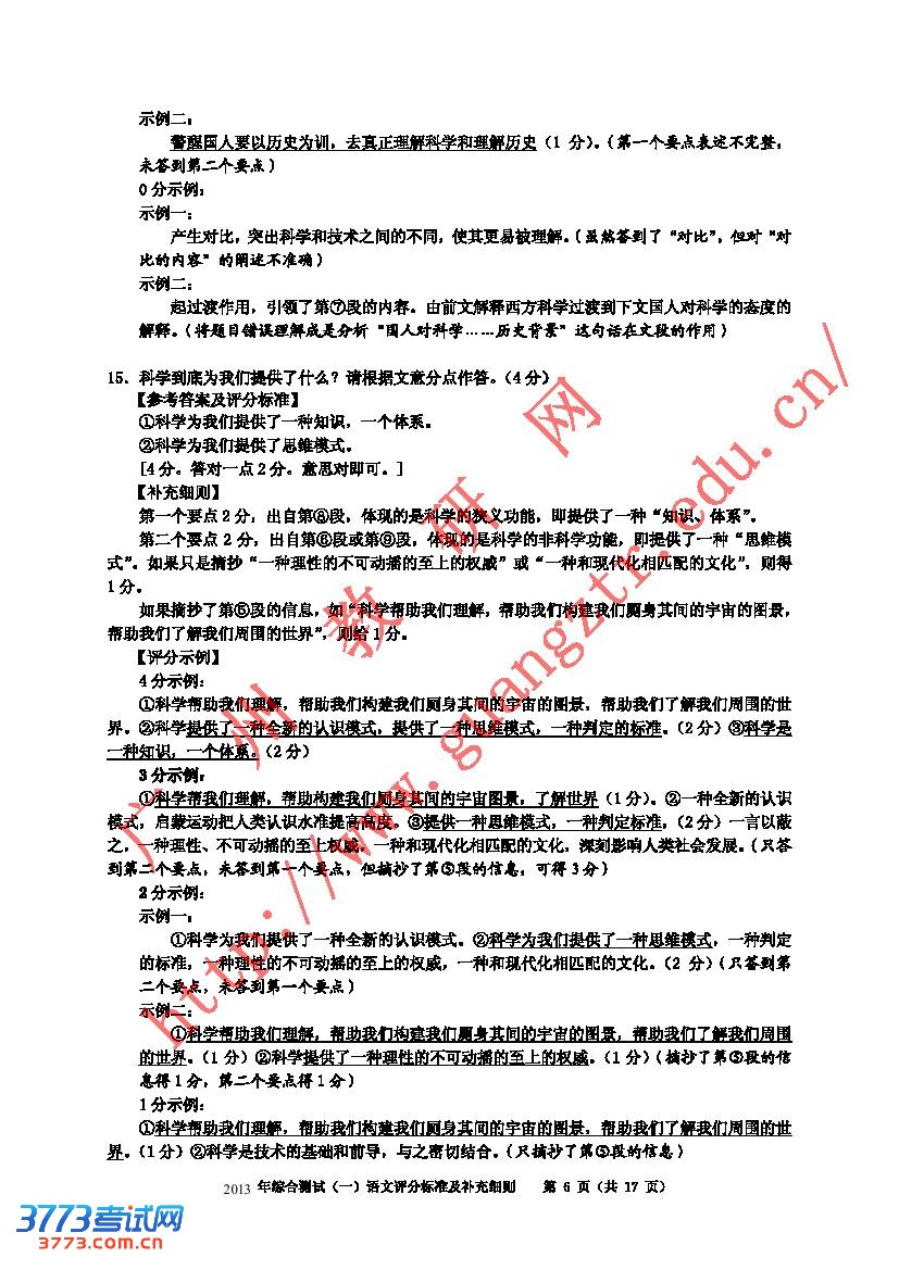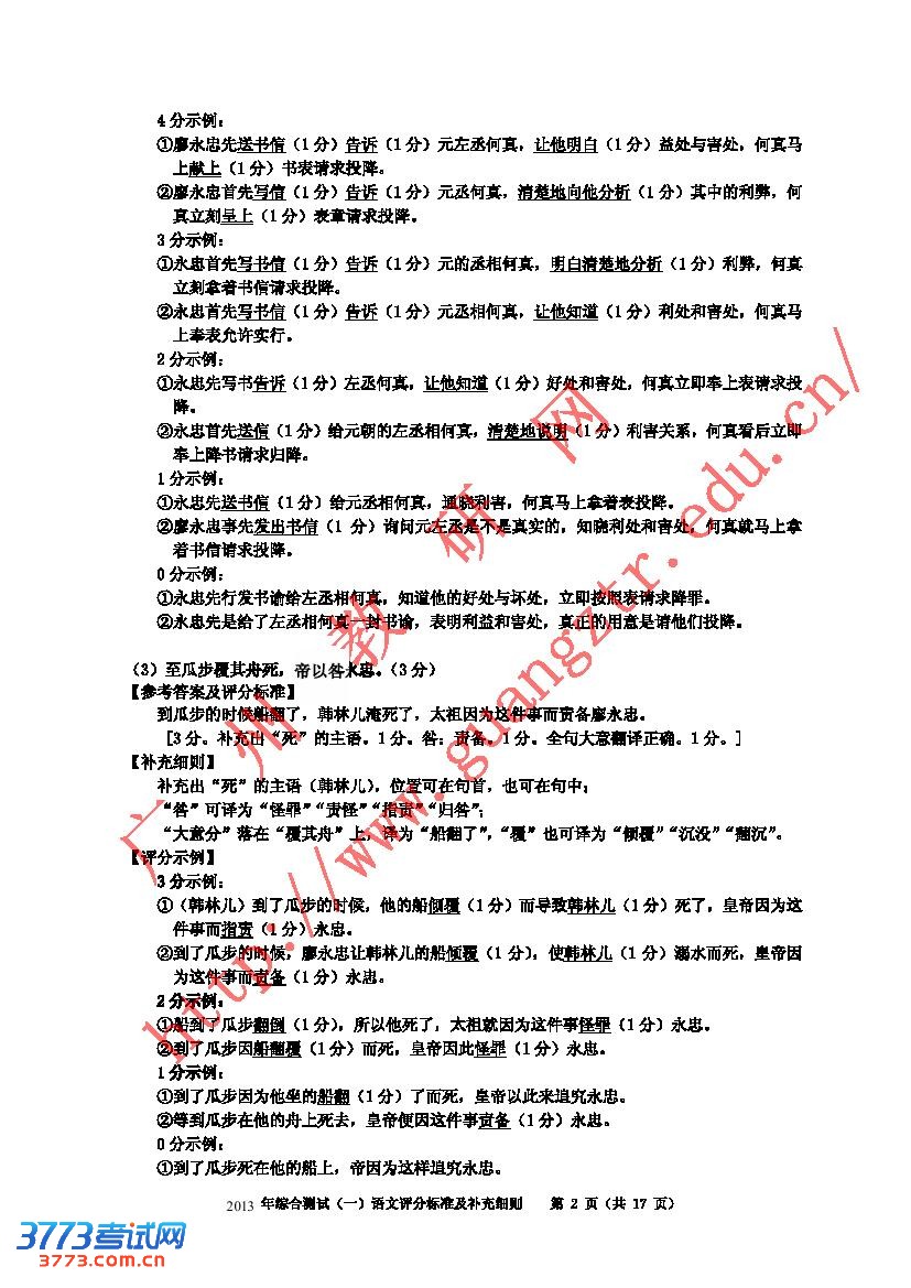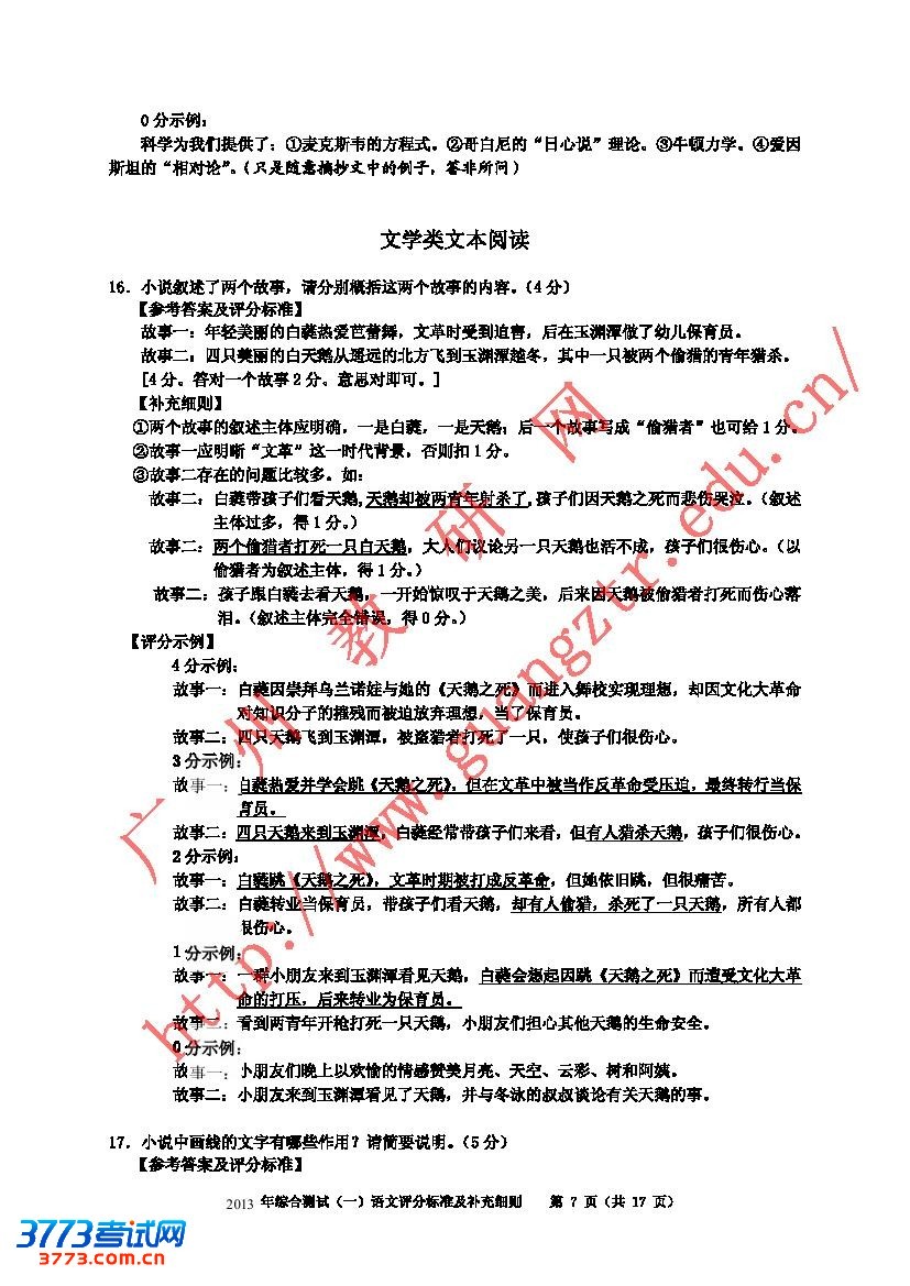 2013年广州市一模语文答案评分标准及细则