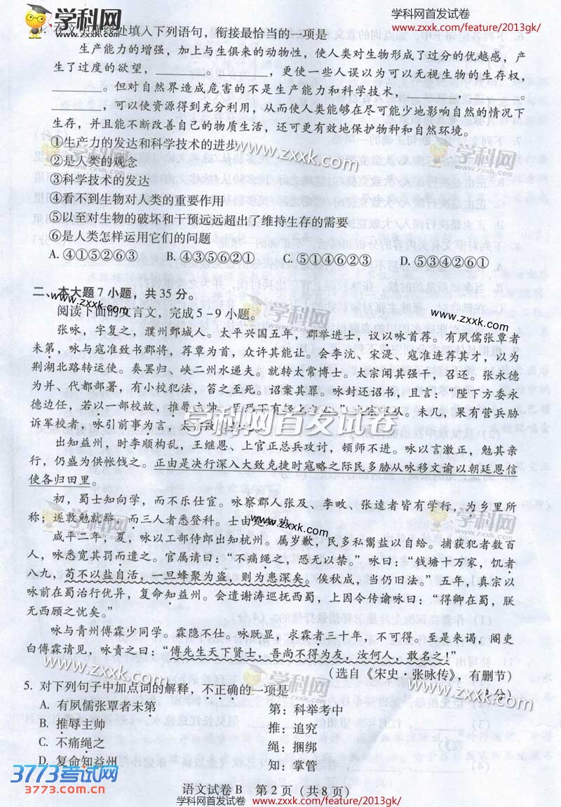 2013广东高考语文试题答案(图片版)