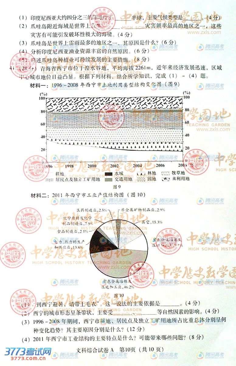 2013广东高考文综试题试卷(答案请关注