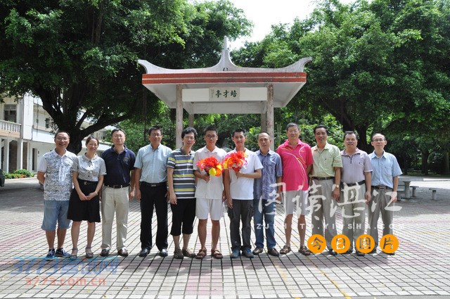 | 校领导、班主任、科任教师与市理科状元、榜眼及家长合影留念 |
