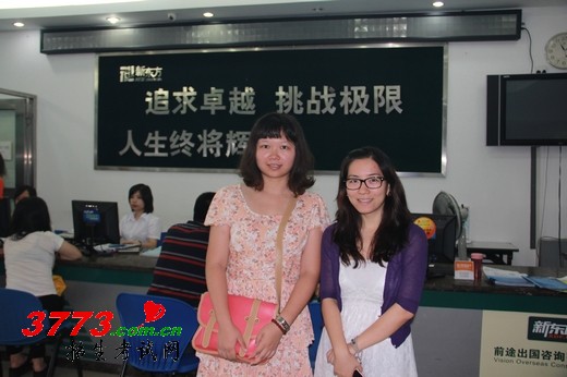 李隽卷(左一)与新东方综合部主管李晓燕老师(右一)合影