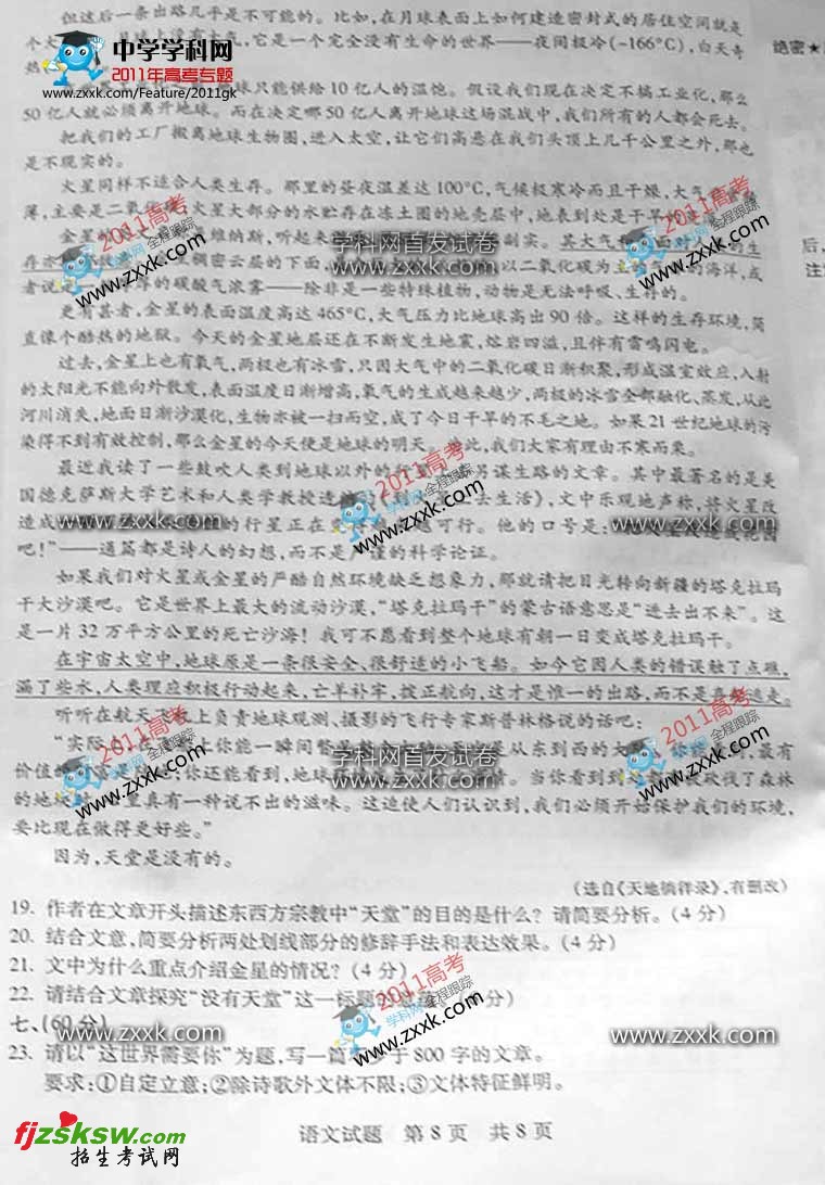 天津2011年高考作文题目:我生活的世界
