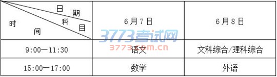 根据《教育部办公厅关于2017年普通高等学校招生全国统一考试全国统考科目时间安排的通知》(教学厅〔2017〕3号)有关要求,我区2017年普通高等学校招生全国统一考试科目时间安排如下: