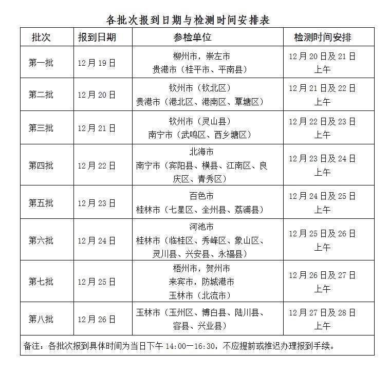 此次复选按照不同地区、不同时段分别进行。复选报到时间为各批次相应的报到日期当日下午14:00—16:30;报到地点在广西壮族自治区南宁市西乡塘区大学东路100号广西大学东25栋(一楼设有空军招飞学生报到处)。