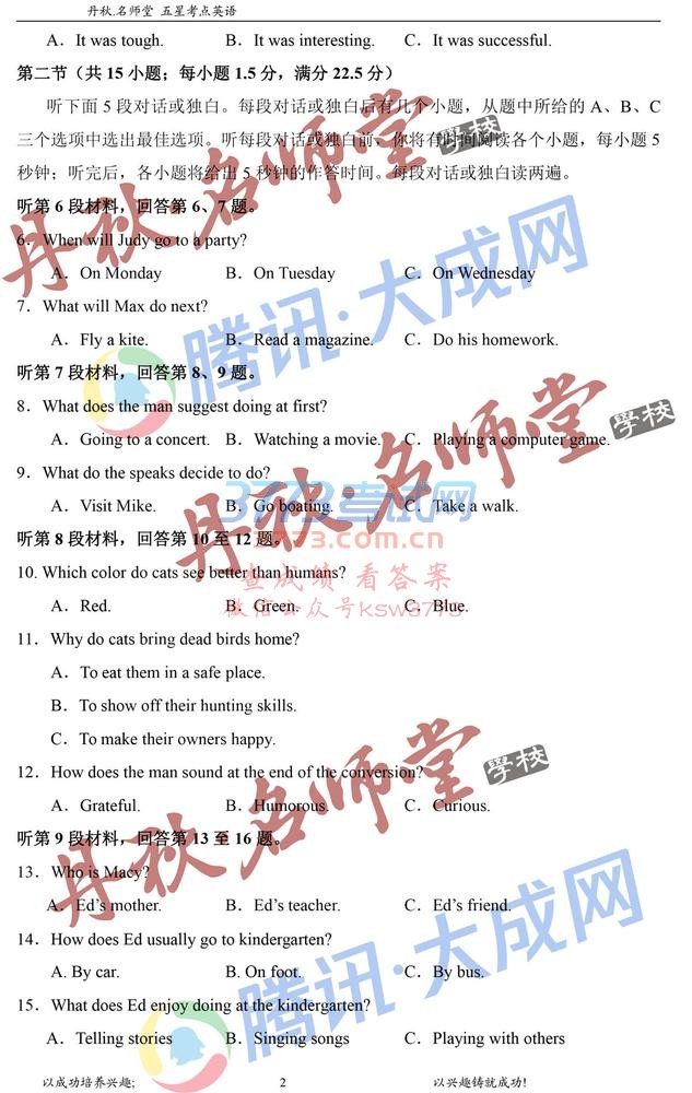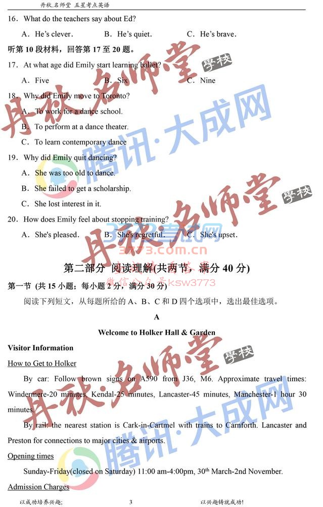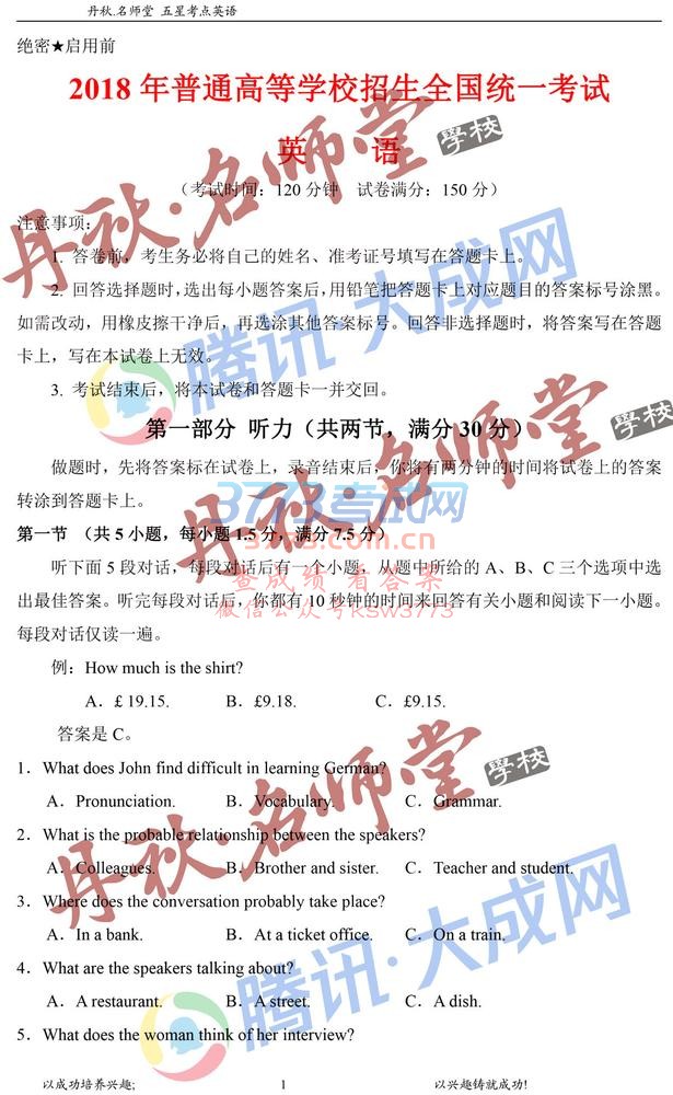 2018全国3卷英语试题及答案发布 适用地区:云南、四川、广西、贵州