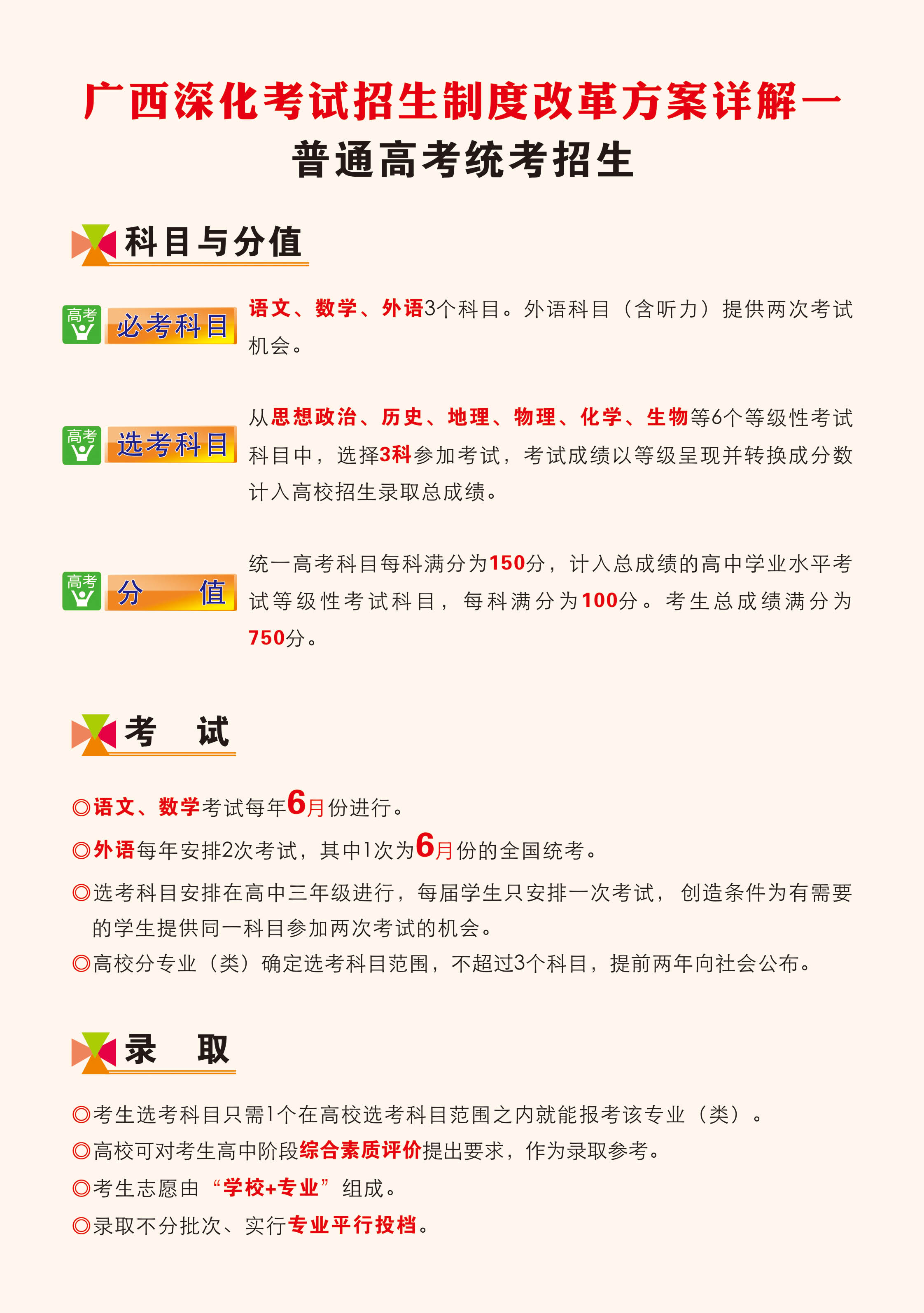 近日,自治区人民政府印发《广西深化考试招生制度改革实施方案》(桂政发〔2016〕11号),对我区深化考试招生制度改革进行具体部署,标志着我区新一轮考试招生制度改革全面推开。