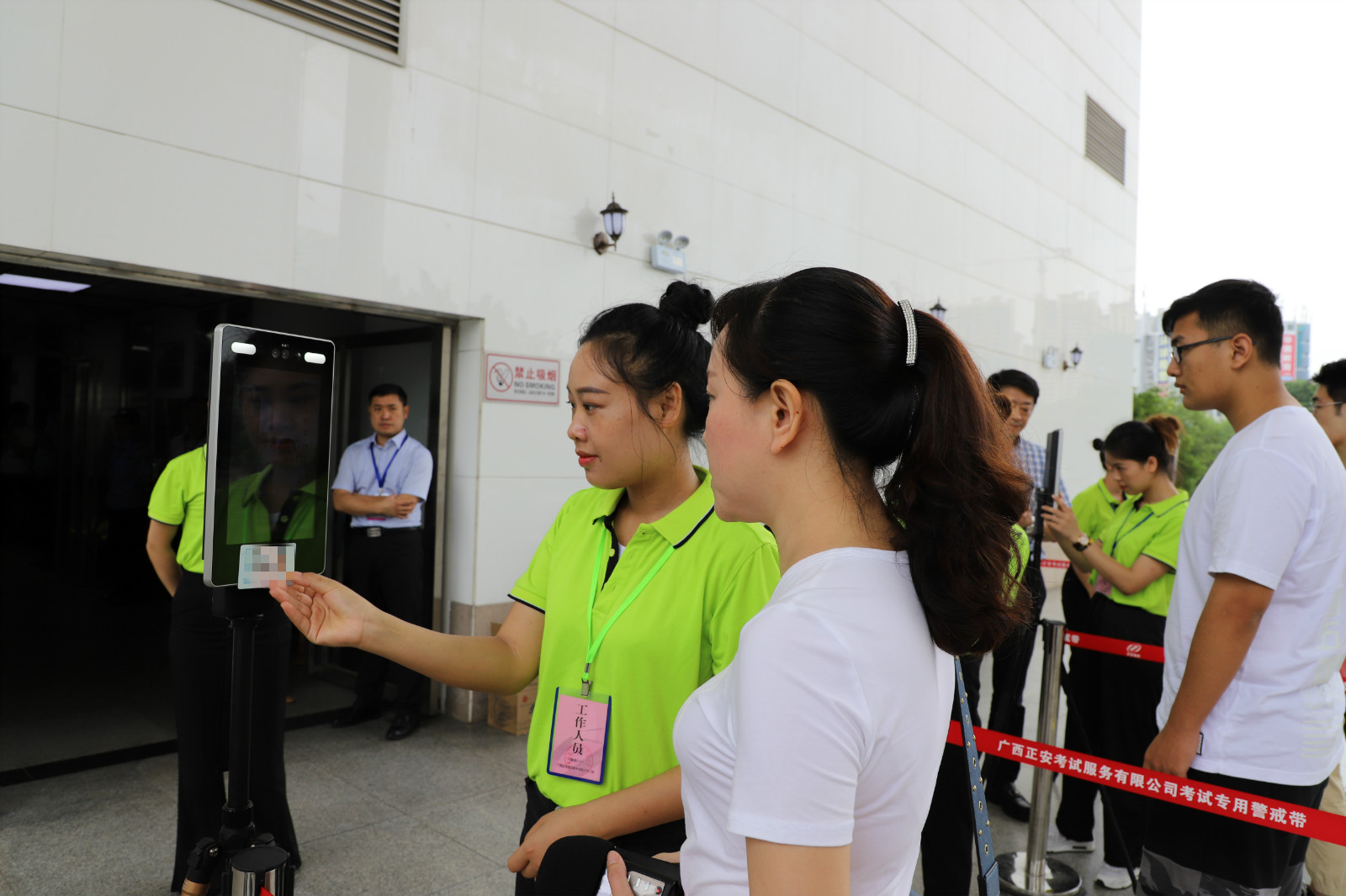 二是严格评卷场所管理。评卷场所大楼被警戒线“包围”起来,并派专人值守,无关人员不准入内。今年我区首次采用“人脸识别”技术,用于评卷人员(含评卷教师、工作人员)进入评卷场所前的身份验证。早在评卷工作开始前,就采集了评卷人员身份信息。大楼入口处设置了“人脸识别”验证通道,所有评卷人员都要“刷脸”验证身份才能通过,如个别人员无法通过时则由人工核验。“人脸识别”验证速度非常快,能在短时间内让大家顺利通过,而且识别得非常精准。“人脸识别”技术的应用不仅减少了人工核验时间、提高了核验准确性,同时也确保了评卷场所及评卷信息的安全。评卷人员进过“人脸识别”验证通道后,值守人员还使用金属探测仪逐一对评卷人员进行检测,确认未携带无关物品后,方可正式进入评卷场所。