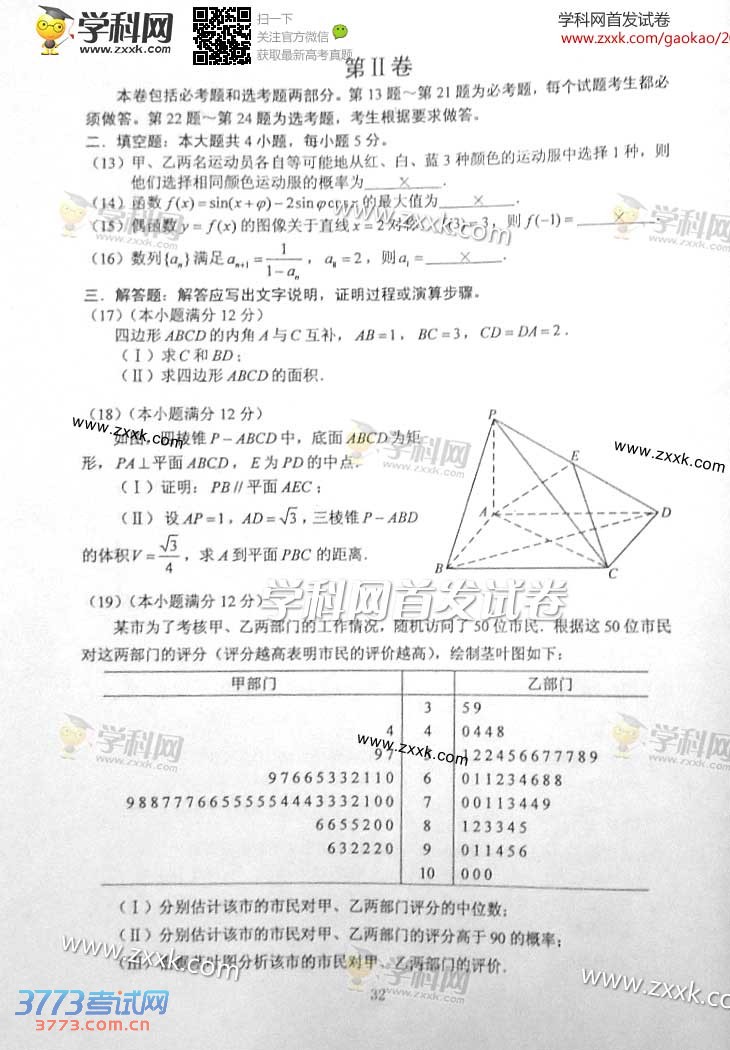 2014贵州高考数学理科试题及部分答案(新课标2卷)