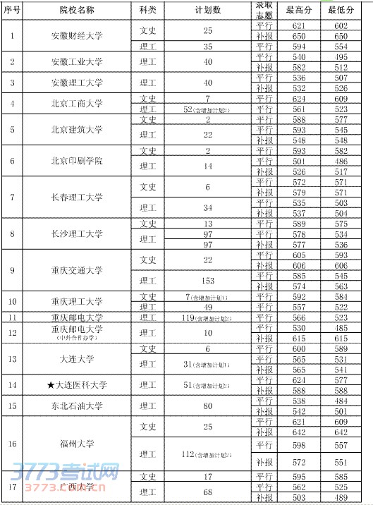 2014贵州高考一本院校第2次补报志愿缺额数统计表