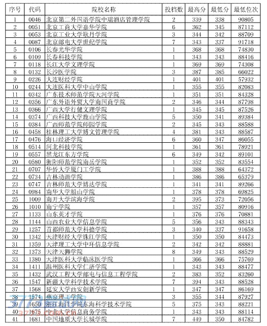 2014贵州高考三本理科院校第2次补报志愿投档分数线