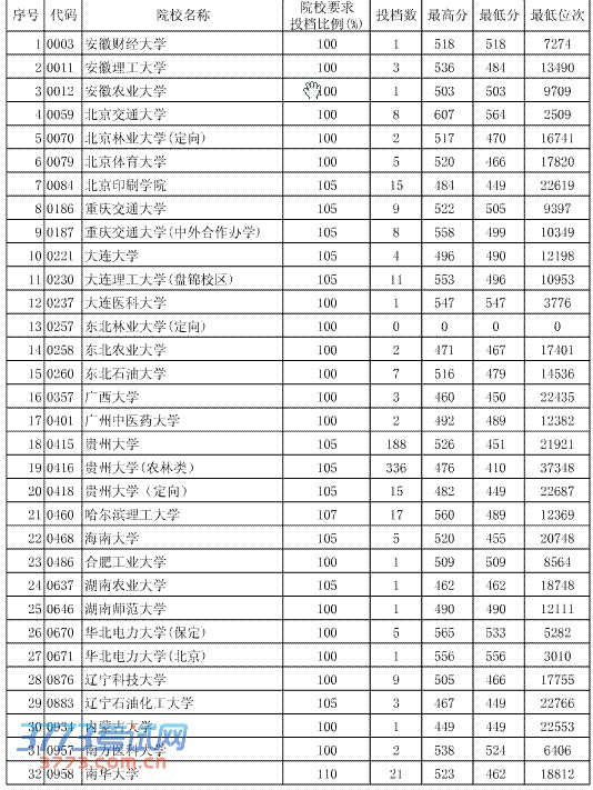 贵州省2013年高考第一批本科理工类补报平行志愿投档情况(7月18日)