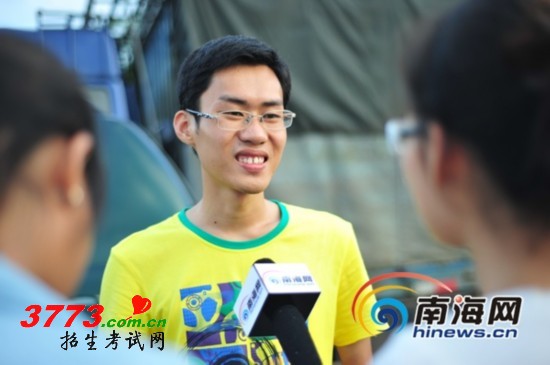 6月25日傍晚,文昌环球码头,2012海南文科状元郑林壮接受记者采访。(南海网记者秦彦摄)